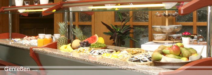 Genießen Sie allein, zu zweit oder mit lieben Verwandten und Freunden unser Frühstücksbuffet. Landbrot, Brötchen, Croissants, große Auswahl Aufschnitt, Wurst, Schinken, Käse, Eier gekocht, Rührei, leckere Fischspezialitäten, Marmeladen, Honig, Antipasti, frische Salate, Müsli Auswahl, getrocknetes Obst, Obst. Kaffee, Latte Macchiato, Espresso, Cappuccino, Tee Auswahl und Milch.